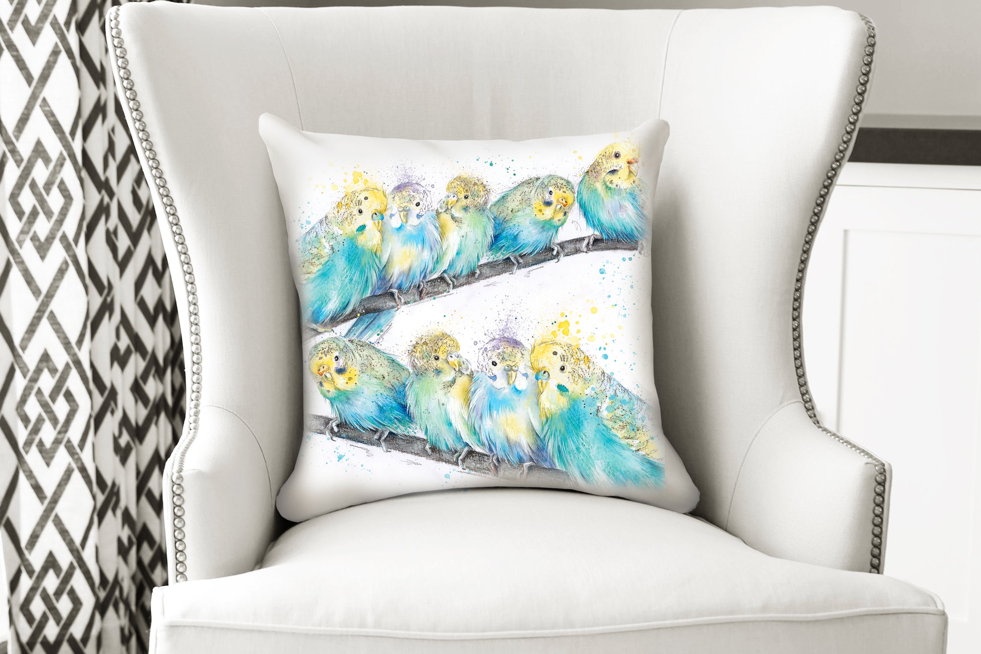 Budgies Cushion, Pillow, Soft Furnishings, Home decor, Art for the Home